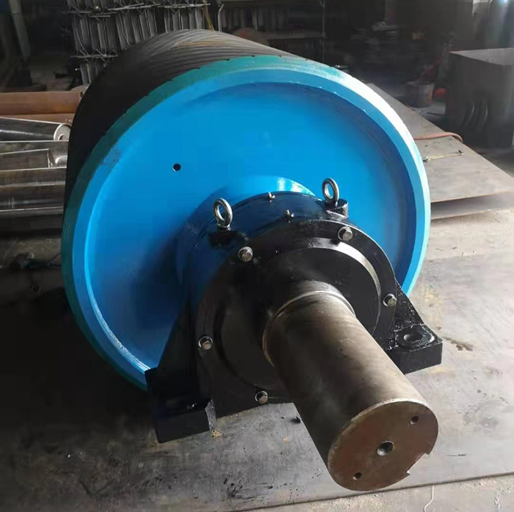 驅(qū)動(dòng)滾筒表面有裸露光鋼面,人字形和菱形花紋橡膠覆面。小功率、小帶寬及環(huán)境干燥時(shí)可采用裸露光鋼面。人字形花紋膠面摩擦系數(shù)大,防滑性和排水性好,但有方向性。菱形膠面用于雙向運(yùn)行的輸送機(jī)。
