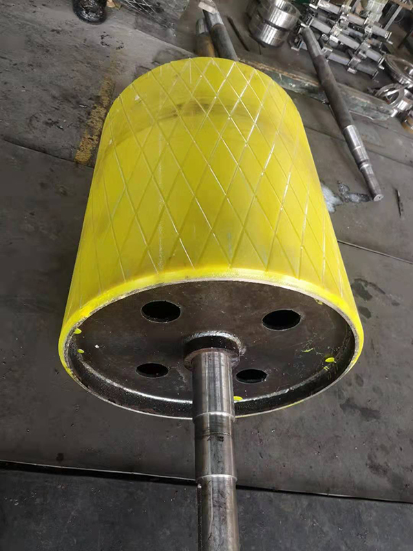 傳動包膠滾筒表面有包膠裸露光鋼面,人字形和菱形花紋橡膠覆面,小功率,小帶寬及環(huán)境干燥時(shí)可采用裸露光鋼面滾筒,人字形花膠面摩擦系數(shù)大,防滑和排水性好。但有方向性,菱形膠面用于雙向運(yùn)動行的輸送機(jī),用于重要場合的滾筒,采用疏化橡膠覆面。